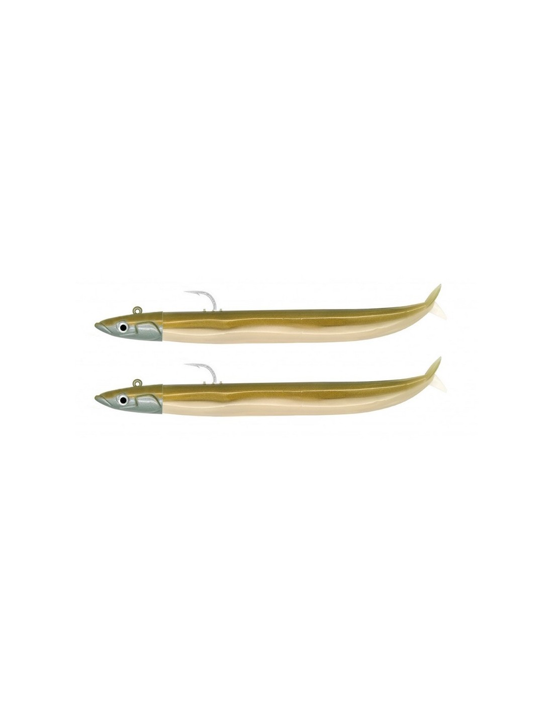 Double combo Crazy Sand Eel de Fiiish taille 120 monté sur tête OFF SHORE 15gr. couleur Or