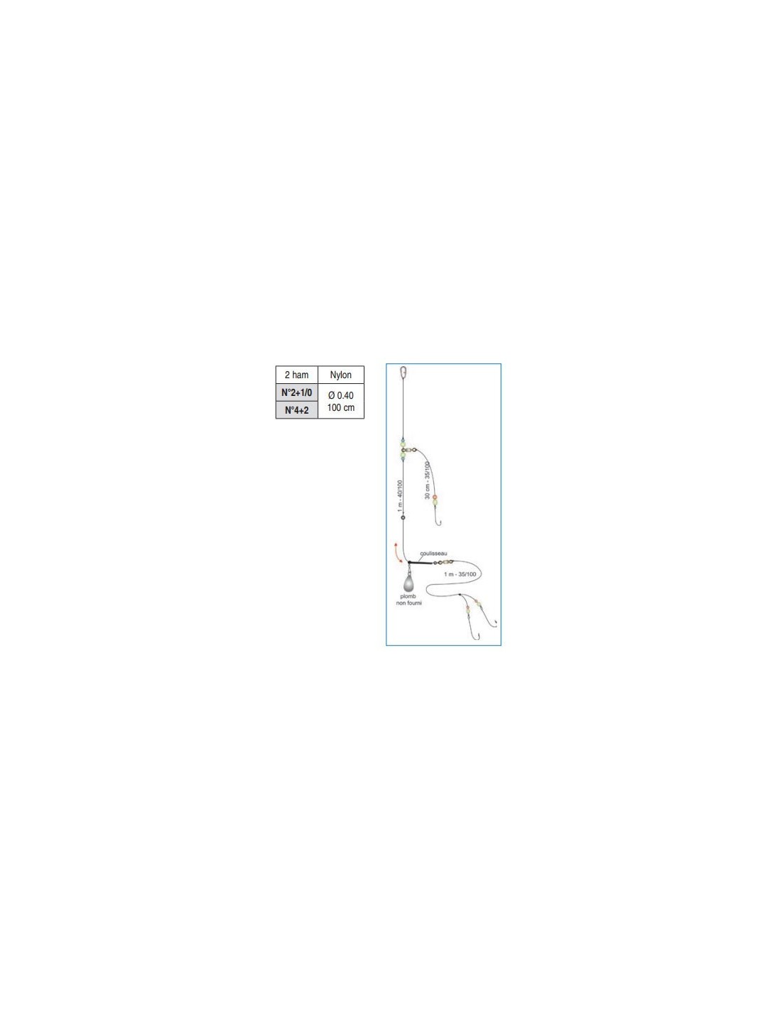 Ce bas de ligne possède 2 hameçons n°2 sur traînard de 1 mètre de longueur en 35/100