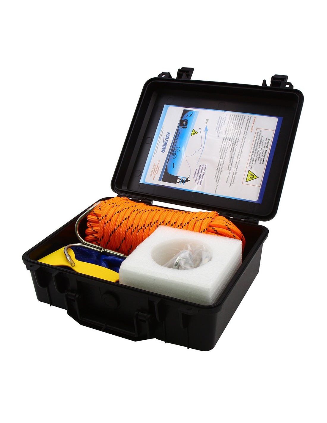 - Corde de 25 m (Ø 8 mm) avec mousqueton en INOX